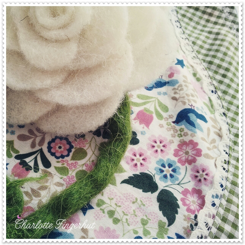 Ich war zu erst auf der Suche nach eher gedeckteren Farben - vielleicht doch mal eher uni - und falls doch Muster, ganz klein und dezent. Ansich mag ich grafische und florale Muster - tja ich war mir echt unschlüssig. Bis mir dann dieser ganz bezaubernde Frühlingsstoff von Swafing in die Hände fiel. Gedecktes weiß als Grundfarbe mit einem ziemlich kleinen Muster aus zarten Blüten, Kelchen und Vögeln - tja und da wars um mich geschehen. Wie es der Zufall so wollte hatte ich auch gleich noch einen passenden grünen Karo-Stoff zum kombinieren zu Hause und ausreichend Borte sowieso :)